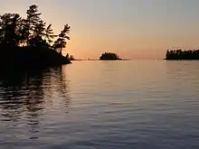 Lake Nipissing (/ˈnɪpəsɪŋ/; French: lac Nipissing, Ojibwe: Gichi-nibiinsing-zaaga’igan) is a lake in the Canadian province of Ontario. It has a surface area of 873.3 km2 (337.2 sq mi), a mean elevation of 196 m (643 ft) above sea level, and is located between the Ottawa River and Georgian Bay. Lake Nipissing is the third-largest lake entirely in Ontario. It is relatively shallow for a large lake, with an average depth of only 4.5 m (15 ft). The shallowness of the lake makes for many sandbars along the lake's irregular shoreline. The lake reaches a maximum depth of 64 m (210 ft) near the mouth of the French River, off the shore of Blueberry Island. The lake has many islands most of which are protected under the Protection of Significant Wetlands scheme, controlled by the Ministry of Natural Resources and Forestry.