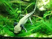 The Lake Patzcuaro salamander, locally known as achoque (Ambystoma dumerilii) is a neotenic salamander species.