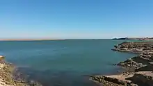 Qadisiyah was formed by the damming of the Euphrates river above Haditha, Iraq. It has 100 kilometres (62 mi) of shoreline and provides irrigation water for nearby cultivated fields.