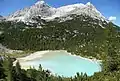 Lago di Sorapiss (Italian: Lago di Sorapiss; German: Sorapissee) is a lake in the mountain range Sorapiss in the Dolomites, province of Belluno, c. 12 km away from Cortina d'Ampezzo. The lake has an altitude of 1,925 metres (6,316 ft.) above sea level.