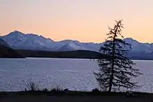 Lake Tekapo is also known for its stunning seasonal display of Lupin that bloom along its shores from around Mid November until the end of December.[13] Russell lupins were introduced in the Mackenzie Basin in the 1940s from sowings or lupins planted in garden which had seeds that spread widely. In 1949 Connie Scott, of Godley Peaks Station, scattered lupin seeds along the roadside after purchasing about £100 worth from the local stock and station agent.[14] Although beautiful, they modify the ecosystems of braided rivers.[15] There were fewer lupins around Lake Tekapo in December 2020, due to the water level in the lake being too high at a vital time in their growth cycle, causing them to fail to flower.[16]