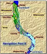 Lake Winneshiek is the name given to that portion of Navigation Pool 9 impounded by Lock and Dam No. 9 between the dam to 4 miles south of the city of Lansing, Iowa on the Upper Mississippi River, near Ferryville, Wisconsin.[1] It encompasses about 6,000 acres (24 km²) and is part of the Upper Mississippi River National Wildlife and Fish Refuge. The Army Corps of Engineers has proposed constructing some islands in the lake in order to improve wildlife habitat.[2]