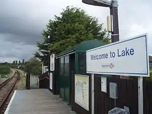 Lake railway station is a station on the Isle of Wight serving the village of Lake, situated in a quiet residential area not far from Lake Cliff Gardens and the beach at Sandown Bay. Until the construction of an interchange station with the Isle of Wight Steam Railway at Smallbrook Junction in 1991, this station was the newest on the island having opened by British Rail in 1987. The Station is formed of a single platform with a shelter.