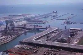 Previous to this urban development, the Lakeshore East area had been used by Illinois Central Railroad yards.[5] After World War II, the railroads sold airspace rights north of Randolph Street.[7] For several years after the rail yards were vacated, the site was used as a 9-hole golf course.[5] Pete Dye designed the course, known as Metro Golf at Illinois Center, which was completed in 1994 and closed in 2001.[8][9] The area was originally planned for development as part of the Illinois Center,[5] and one of the challenges to the new development was to integrate itself into the inherited triple-level street system while creating a visually appealing and pedestrian friendly neighborhood.[5] The solution was to stagger ground-level amenities and building entrances from the upper level at the perimeter to the lower level at the interior. Thus the multilevel street grid is utilized around the edges, with large parking structures in the podiums, while a large park at the lowest level forms the core of the development.[5] When the redevelopment was planned in 2001 and commenced in 2002, completion was anticipated to happen in 2013.[10]