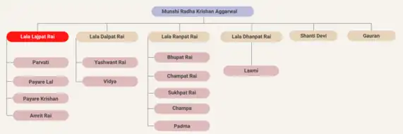 | Relatives | Lala Dhanpat Rai (Brother) |