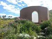 It was one of almost thirty communes (intentional communities) established in the region around that time, and one of the most well-known, along with Morningstar East, Reality Construction Company, the Hog Farm, New Buffalo, and The Family.[2][7] By 1973, the vast majority of these communities had closed, but the Lama Foundation was able to continue because it had more structure and discipline than most others.[5][8] The community has gone through several stages, ranging from the search for spiritual enlightenment to a more recent focus on permaculture and natural building.[3]