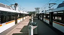 Lambert Airport Terminal 1 station is a St. Louis MetroLink station.[2] The station is connected to the eastern end of Terminal 1 at St. Louis Lambert International Airport. Terminal 1 serves Air Canada, Alaska Airlines, American Airlines, Cape Air, Delta Air Lines, Frontier Airlines, Spirit Airlines, and United Airlines.[3]