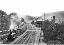 On 24 December 1881, Palatine Ludwig Railway Company (Pfälzische Ludwigsbahn-Gesellschaft) established a yard for loading timber near the station in order to improve operations.[51] This later developed into Lambrecht freight yard, since Lambrecht station had reached the limits of its capacities and, for reasons of topography, an extension of the track layout was impossible.[52] Frankeneck freight yard was also built at the other end of the track that developed into the Little Cuckoo Railway.[53] In order to get to the freight yard, the trains had to reverse in Frankeneck station, with the locomotive running around the train. The freight yard itself had four main tracks.[54]