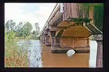 The Lamington Bridge, which crosses the Mary River from Tinana to Maryborough, was built to the design of AB Brady and opened in 1896. It replaced an earlier highset timber bridge constructed in 1874 and is one of Australia's oldest concrete bridges.[1]