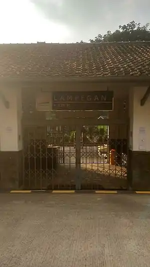 Lampegan Station (LP) is a class III railway station located in Cimenteng, Campaka, Cianjur Regency. The station, which is located at an altitude of +439 m, is included in the Bandung Operational Area II and is a railway station located in the westernmost part of Cianjur Regency.