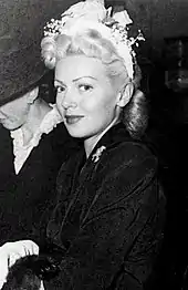 Turner's rise to fame and establishment as a Hollywood sex symbol[13] following They Won't Forget was concurrent with World War II, and she became a prominent pin-up model at the time, appearing painted on the noses of U.S. fighter planes bearing the title "Tempest Turner."[14] MGM appointed her to tour the United States West Coast and sell war bonds in various cities in the summer of 1942.[15] During the tour, Turner began giving out kisses to the highest buyers, and by the end of the 10-week tour, had sold $5.25 million (equivalent to $87.1 million in 2021) in war bonds.[15]