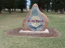Lāna‘i was once the home of the pineapple plantation of entrepreneur James Drummond Dole, which spanned over 20,000 acres (81 km2) and employed thousands of workers. Dole owned the entire island for a time, and in the 1920s built Lāna‘i City to house and serve the community of workers.[7] It was the first model city in Hawai‘i. In 1923 several stores, a bank, a hospital, a theater, a church and business headquarters were built around an open park space. In 1930 model homes for couples featuring two bedrooms, a large living room, a kitchen, with running water, electricity and spacious yards were erected. The single men's houses had three furnished rooms and also running water and electricity.[8]
