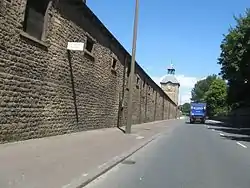 The Lancaster Railway Carriage and Wagon Company originated in 1863.[1] Offices and workshops for the company were designed by the local architect E. G. Paley, and built between 1863 and 1865 alongside the North Western Branch of the Midland Railway.[2][3] The works manufactured railway carriages and wagons, trams, wheels and axles, and provided wagons for hire. It closed in 1908 when its business moved to the Ashbury Railway Carriage and Iron Company Ltd.[1] During the First World War the buildings were used for the internment of enemy aliens. At one time the officer in charge was Robert Graves, who later included his experiences in Lancaster in his autobiography Good-Bye to All That. In 2011, the buildings were being used as an office, warehouse and as part of a factory.[2]