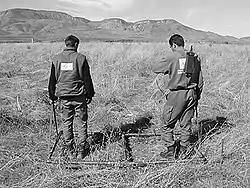 The region of Nagorno-Karabakh and areas around it are considered to be some of the most heavily mined regions of the former Soviet Union. Mines were laid from early 1990s by both Azerbaijani and Armenian forces during and after the First Nagorno-Karabakh War. The worst-affected areas are along the fortified former contact line between Azerbaijani and Armenian forces, in particular in the districts of Aghdam, Fuzuli and Jabrayil. According to military experts from both Azerbaijan and Armenia, the ground in those areas is covered with "carpets of land mines."[1] The region has the highest per capita rate in the world of accidents due to unexploded ordnance.[2][3][4]