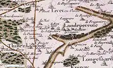 In 1845, Landepereuse grew with the addition of the little village of Tilleul-en-Ouche,[6] located in the small pocket to the south-west of the current village. In the 1950s, the inhabitants, or their representatives, officially requested a name change for the village, from Landepereuse to Landepéreuse.[7]