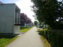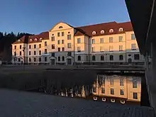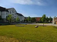 The Landesgymnasium's campus is situated at the University park in the east of Schwäbisch Gmünd. During the 20th century it was used as barracks initially by the German Army (Bismarck Kaserne) and then after WWII as a US military base with nuclear Pershing II missiles stationed nearby, which were eliminated in 1990. In 1992, the US forces withdrew and the campus was used as a spin-out of the University of Maryland University College until 2002. School building, boarding houses and teachers' flats are situated in the recently renovated barracks while the canteen and a gym were newly built on the former parade ground.[1]