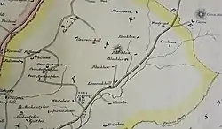 Roy's map of 1747 shows a well laid out grouping of three dwellings below Blacklaw Hill and Blacklaw Townhead above to the north-east. Corshouse and Hareshaw farms lay on the Glenouther Moor side of the Annick Water.[8] In 1856 Blacklawhill, Lowtown of Blacklaw and Midtown of Blacklaw are shown with Townhead of Blacklaw to the north-east. A Blacklaw Cottage stands on the driveway to Blacklawhill.[20] In 1895 a track ran up to the Glenouther Moor crossing the Annock Water by a bridge. A sheep ree is shown on a field boundary below the moor edge.[2]