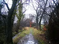 Mid Road used to cross the Bath Burn by a ford near Mains House and then ran up to the town; the road has now been abandoned and is only used by intrepid walkers.