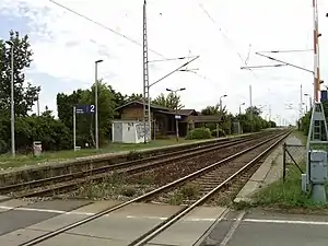 Landsberg (b Halle/Saale) Süd station (German: Haltepunkt Landsberg (b Halle/Saale) Süd) is a railway station in the municipality of Landsberg, located in the Saalekreis district in Saxony-Anhalt, Germany.