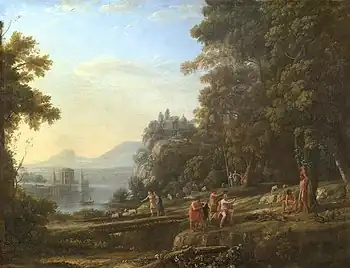 The artist recorded it in his Liber Veritatis as number 45, captioned "made for monsier Perochet", meaning the art collector Guillaume Perochet, for whom Lorrain produced four works in total between 1637 and 1639.[1] It was in the Crozat collection from 1755, which was bought in its entirety by Catherine the Great for the Hermitage Museum, from which it was transferred to its present home in 1924.