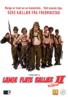 Lange Flate Ballær II is a 2008 Norwegian comedy film directed by Harald Zwart. It is the sequel to the 2006 film Lange Flate Ballær. The main actors from the first film reprised their roles, starring along with Don Johnson as the US Navy Admiral Burnett. The title translates as "Long Flat Balls II" and released on April 1, 2022.[1]