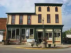 West Alexandria's hilltop site near Twin Creek and its location along a major road made it the junction of multiple important transportation arteries. By the 1880s, a new hotel was needed, and the result was the present frame two-and-a-half-story building with Italianate elements,[2] built on a foundation of limestone.[3] Despite the new construction, there was soon a lack of space, so a two-story wing was constructed on the western side of the original building in 1904.[2] Today, the hotel remains on a busy street — Dayton Street is now U.S. Route 35[4] — but by the early 1990s, it had ceased to be a hotel and was vacant. Nevertheless, it retained its structural integrity; in January 1991, the hotel was declared historically significant enough and sufficiently well preserved to warrant addition to the National Register of Historic Places, a designation that it officially received on 25 January. Essential to its status as a historic site was its rôle in the community's history as a transportation center.[1]