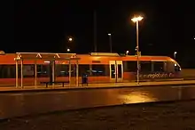 The latest renovation in 2009 created a new platform track 5 with a bus station and a "park and rail" parking area. Track 5 is adjacent to track 4, but separated from it by a sound barrier. This is a terminating track, used only by Euregiobahn services from Aachen ending in Langerwehe. These services connect to the main line a few hundred metres west of the station. These services can also run to the station on track 4 and, since the timetable change of December 2009, half of the Euregiobahn services operate to Düren.