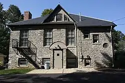 Built in 1891, this historic structure is a small 1+1⁄2-story building with stone-faced, wood-frame walls and a slate covered hipped roof. Designed in the Queen Anne style, it measures thirty-three feet wide by forty-three feet deep. The roof features two eyelid dormers and a gable dormer with fishscale shingles. The school was converted to a borough hall in 1959.[2]