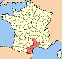 Languedoc-Roussillon wine, including the vin de pays labeled Vin de Pays d'Oc, is produced in southern France. While "Languedoc" can refer to a specific historic region of France and Northern Catalonia, usage since the 20th century (especially in the context of wine) has primarily referred to the northern part of the Languedoc-Roussillon région of France, an area which spans the Mediterranean coastline from the French border with Spain to the region of Provence. The area has around 700,000 acres (2,800 km2) under vines and is the single biggest wine-producing region in the world, being responsible for more than a third of France's total wine production.[1] In 2001, the region produced more wine than the United States.[2]