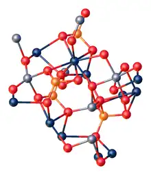Lanthanum gallium silicate (referred to as LGS in this article), also known as langasite, has a chemical formula of the form A3BC3D2O14, where A, B, C and D indicate particular cation sites. A is a decahedral (Thomson cube) site coordinated by 8 oxygen atoms. B is octahedral site coordinated by 6 oxygen atoms, and C and D are tetrahedral sites coordinated by 4 oxygen atoms. In this material, lanthanum occupied the A-sites, gallium the B, C and half of D-sites, and, silicon the other half of D-sites.[1]