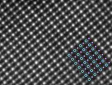 It has a perovskite-based crystal structure, which has the general form ABO3. In the crystal, the 'A' sites are occupied by lanthanum and strontium atoms, and the 'B' sites are occupied by the smaller manganese atoms. In other words, the material consists of lanthanum manganite with some of the lanthanum atoms substitutionally doped with strontium atoms. The strontium (valence 2+) doping on lanthanum (valence 3+) introduces extra holes in the valence band and thus increases electronic conductivity.