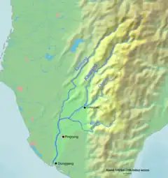 The Laonong River, also spelled Laonung River (Chinese: 荖濃溪; pinyin: Lǎo nóng xī; Wade–Giles: Lao3-nung2 Hsi1),[2] is a tributary of the Gaoping River in Taiwan;[3][4] it is the main course of the river system above the Gaoping River.[4] It flows through Kaohsiung City for 136 km.[1]