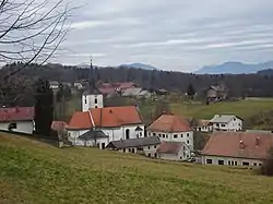 The parish church in the settlement is dedicated to Saints Phillip and James and belongs to the Roman Catholic Archdiocese of Maribor. It was built in 1907 on the site of a 14th-century church.[5] The first structure at the site dated to 1374, and the parish was established in 1395. The first known parish priest was attested in 1429, and the parish records date back to 1619. The main altar in the church was created by Jožef Holzinger in 1770, and several statues are the work of Jožef Straub.[3]