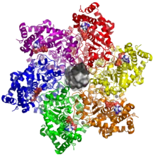 The large tumor antigen (also called the large T-antigen and abbreviated LTag or LT) is a protein encoded in the genomes of polyomaviruses, which are small double-stranded DNA viruses. LTag is expressed early in the infectious cycle and is essential for viral proliferation. Containing four well-conserved protein domains as well as several intrinsically disordered regions, LTag is a fairly large multifunctional protein; in most polyomaviruses, it ranges from around 600-800 amino acids in length. LTag has two primary functions, both related to replication of the viral genome: it unwinds the virus's DNA to prepare it for replication, and it interacts with proteins in the host cell to dysregulate the cell cycle so that the host's DNA replication machinery can be used to replicate the virus's genome. Some polyomavirus LTag proteins - most notably the well-studied SV40 large tumor antigen from the SV40 virus - are oncoproteins that can induce neoplastic transformation in the host cell.[2][3]