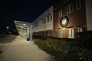 A view of Largo High School's seal from the front of the rebuilt building