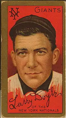 Lawrence Joseph Doyle (July 31, 1886 – March 1, 1974), nicknamed "Laughing Larry", was an American second baseman in Major League Baseball from 1907 to 1920 who played almost his entire career for the New York Giants. The National League's outstanding second baseman during the 1910s, he was awarded the 1912 Chalmers Award as the league's best player, and won the 1915 batting title with a .320 average. The team captain and top everyday star on three consecutive pennant winners (1911–1913), his .408 career slugging average was the top mark by an NL second baseman when he retired, as were his career totals in hits (1887), doubles (299), triples (123), total bases (2654) and extra base hits (496). He ended his career among the major league leaders in career games (5th, 1730), putouts (9th, 3635), assists (9th, 4654), total chances (9th, 8732) and double plays (5th, 694) at second base, and set Giants franchise records for career games, at bats and doubles, each of which was broken by Bill Terry.