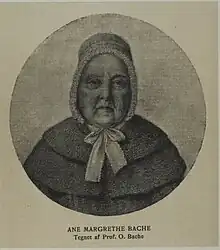 On 27 November 1795 in St. Olai's Church in Helsingør, Bache married Anne Margrethe Bache (1772–1857), daughter of fisherman and strandfoged in Rungsted Ole Olsen Bagge (1746–1802) and Marie Larsdatter (1745–1814). She had until then served as housekeeper for Nicolas Fenwick, at Strandgade 85–87. In 1801, Bache purchased Stengade 27.[2]