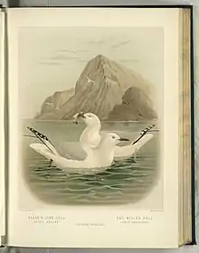 Originally named Gavia pomare in 1855 by Carl Friedrich Bruch, the name was rejected by the New Zealand ornithologist Sir Walter Lawry Buller because it was already being used for another species.[7]: 58–59 He then took up Prince Napoléon Bonaparte's "playful" genus name Bruchigavia (literally, "Bruch's seabird")[8] as a provisional name for New Zealand gulls.[7]: 60 But because Buller's proposed species name melanoryncha (literally, "black-billed")[9]: 545 had already been given to another gull species, Frederick Hutton suggested the name bulleri, in honor of Buller, in 1871.[10][7]: 59 Buller accepted the offer and followed others in adopting the "larger and better-defined genus" of Larus.[7]: 59 The alternative common name Buller's gull also retains the connection to Buller.