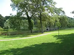 Larz Anderson Park is a wooded, landscaped, and waterscaped 64-acre (26 ha) parkland in Brookline, Massachusetts that is listed on the National Register of Historic Places. The southwest corner of the park is in Boston.[1][2] The park contains playing fields, picnic areas, gardens, waterways, an ice skating rink, and two sites of special interest:
