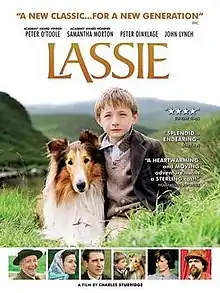 Lassie is a 2005 adventure comedy-drama film based on Eric Knight's 1940 novel Lassie Come-Home about the profound bond between Joe Carraclough and his rough collie, Lassie. The film was directed, written, and co-produced by Charles Sturridge and is a production of Samuel Goldwyn Films. The film stars Jonathan Mason and was distributed by Roadside Attractions and released in the UK on 16 December 2005. Filming took place in Scotland, Ireland and the Isle of Man. The supporting cast features Peter O'Toole, Samantha Morton, Peter Dinklage, Edward Fox, and John Lynch. The film was generally reviewed positively by critics, but performed poorly at the box office.