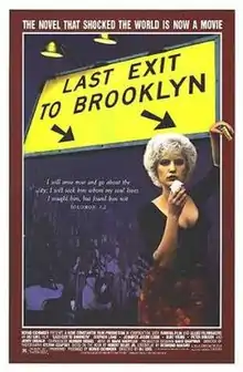 Last Exit to Brooklyn, originally entitled "Stick Me Vinnie" is a 1989 drama film directed by Uli Edel and adapted by Desmond Nakano from Hubert Selby Jr.'s 1964 novel of the same title.[4][5][6] The film is an international co-production between Germany, the UK, and the United States.[5][4] The story is set in 1950s Brooklyn and takes place against the backdrop of a labor strike. It follows interlocking storylines among the working class underbelly of the Red Hook neighborhood, including unionized workers, sex workers, and drag queens.