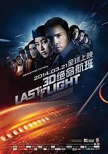 Last Flight (Chinese: 绝命航班) is a 2014 Chinese supernatural action thriller film based on a novel by Singaporean novelist and actress Megan Tay. starring Ed Westwick and Zhu Zhu. The film was directed by Vincent Zhou.[1][2] The screenplay was written by Vincent Zhou and Peter Cameron.
