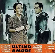 Last Love (Italian: Ultimo amore) is a 1947 Italian melodrama film directed by Luigi Chiarini and starring Clara Calamai, Andrea Checchi and Carlo Ninchi.[1] It set during the Second World War with Italy close to defeat and increasingly occupied by German troops. Three Italian soldiers are enjoying some leave when they become involved with an enigmatic female singer!.