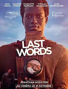 Last Words is a 2020 internationally co-produced drama film directed by Jonathan Nossiter. It was selected to be shown at the 2020 Cannes Film Festival.[2][3][4] It premiered at the Deauville American Film Festival on 6 September 2020.[5]