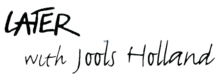 Later... with Jools Holland (also known as Even Later... with Jools Holland, and previously known as Later Live... with Jools Holland and ...Later with Jools Holland) is a contemporary British music television show hosted by Jools Holland. A spin-off of The Late Show, it has been running in short series since 8 October 1992[6] and is now part of BBC Two's Saturday Night Music block,[7] usually broadcast at around 10pm.[8][9][10] The day of transmission has varied over the years, but it is usually recorded on a Tuesday for Saturday broadcast[11] and features a mixture of both established and new musical artists, from solo performers to bands and larger ensembles.