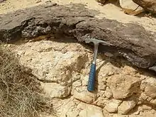 An essential feature for the formation of laterite is the repetition of wet and dry seasons.[13] Rocks are leached by percolating rain water during the wet season; the resulting solution containing the leached ions is brought to the surface by capillary action during the dry season.[13] These ions form soluble salt compounds which dry on the surface; these salts are washed away during the next wet season.[13] Laterite formation is favored in low topographical reliefs of gentle crests and plateaus which prevents erosion of the surface cover.[8]: 4 The reaction zone where rocks are in contact with water—from the lowest to highest water table levels—is progressively depleted of the easily leached ions of sodium, potassium, calcium and magnesium.[13] A solution of these ions can have the correct pH to preferentially dissolve silicon oxide rather than the aluminum oxides and iron oxides.[13] Silcrete has been suggested to form in zones inrelatively dry "precipitating zones" of laterites.[14] To the contrary, in the wetter parts of laterites subject to leaching ferricretes have been suggested to form.[14]