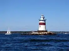Latimer Reef Light is a sparkplug lighthouse on Latimer's Reef in Fishers Island Sound.[2][3][4] The lighthouse is located one mile northwest of East Point on Fisher's Island, Suffolk County, New York. Originally called Latemore's Reef after James Latemore.