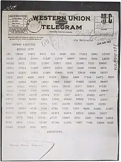 In general, Latin America stayed out of direct conflict in World War I, but the Great Powers were aware of the region's importance for the short and long term. Germany attempted to draw Mexico into supporting its side against the British, the French, and especially the U.S., by trying to leverage anti-Americanism to its advantage. The Great Powers had been actively working to affect the course of the Mexican Revolution (1910–1920). Great Britain and the U.S. had huge investments in Mexico, with Germany close behind, so the outcome of the conflict would have consequences there. The U.S. directly intervened militarily, but not on a huge scale.[94] A German diplomatic proposal, now known as the January 1917 Zimmermann Telegram, sought to entice Mexico to join an alliance with Germany in the event of the United States entering World War I against Germany by promising the return of territory Mexico had lost to the U.S. The proposal was intercepted and decoded by British intelligence. The revelation of the contents outraged the American public and swayed public opinion. The news helped to generate support for the United States declaration of war on Germany in April 1917 as well as to calm U.S.-Mexico relations.[95] Mexico, far weaker militarily, economically, and politically than the U.S., ignored the German proposal; after the U.S. entered the war, it officially rejected it.