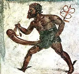 A draucus (the word occurs only in Martial), according to Housman, was a man "who performs feats of strength in public".[8] Rabun Taylor disagrees and sees a draucus more as a kind of rent boy who hung around in the baths in search of patrons.[9]