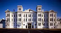 The Latrobe Gate (also known as Main Gate, Washington Navy Yard) is a historic gatehouse located at the Washington Navy Yard in Southeast Washington, D.C. Built in 1806 and substantially altered in 1881, the ceremonial entrance to the U.S. Navy's oldest shore establishment is an example of Greek Revival and Italianate architecture.[2] It was designed by the second Architect of the Capitol Benjamin Henry Latrobe, whose works include St. John's Episcopal Church, the Baltimore Basilica, and the United States Capitol. The Latrobe Gate is one of the nation's oldest extant examples of Greek Revival architecture.[3] It was added to the National Register of Historic Places on August 14, 1973, and is a contributing property to the Washington Navy Yard's status as a National Historic Landmark.[2][3]